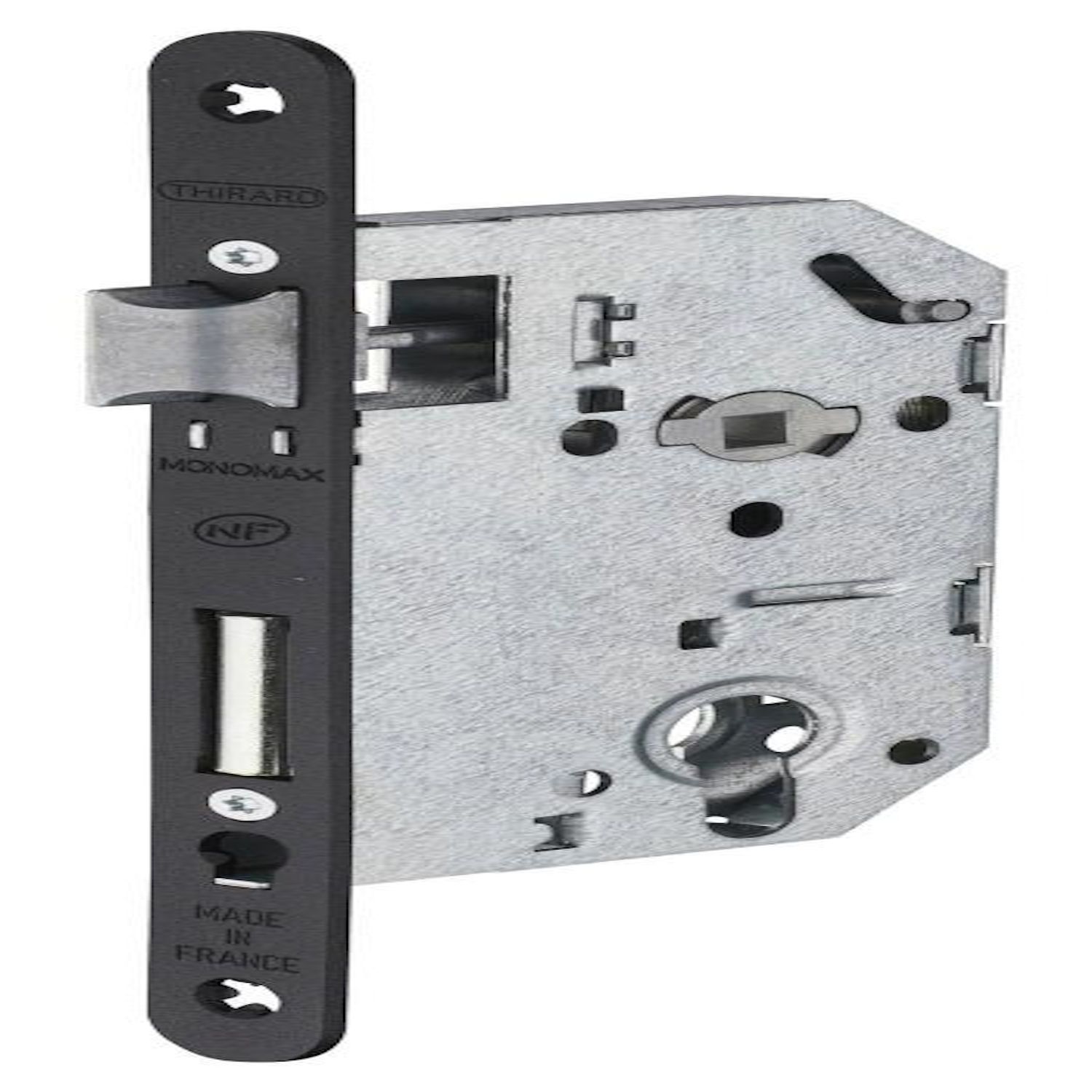 Serrure encastrée THIRARD, à cylindre, axe 50 mm, noir