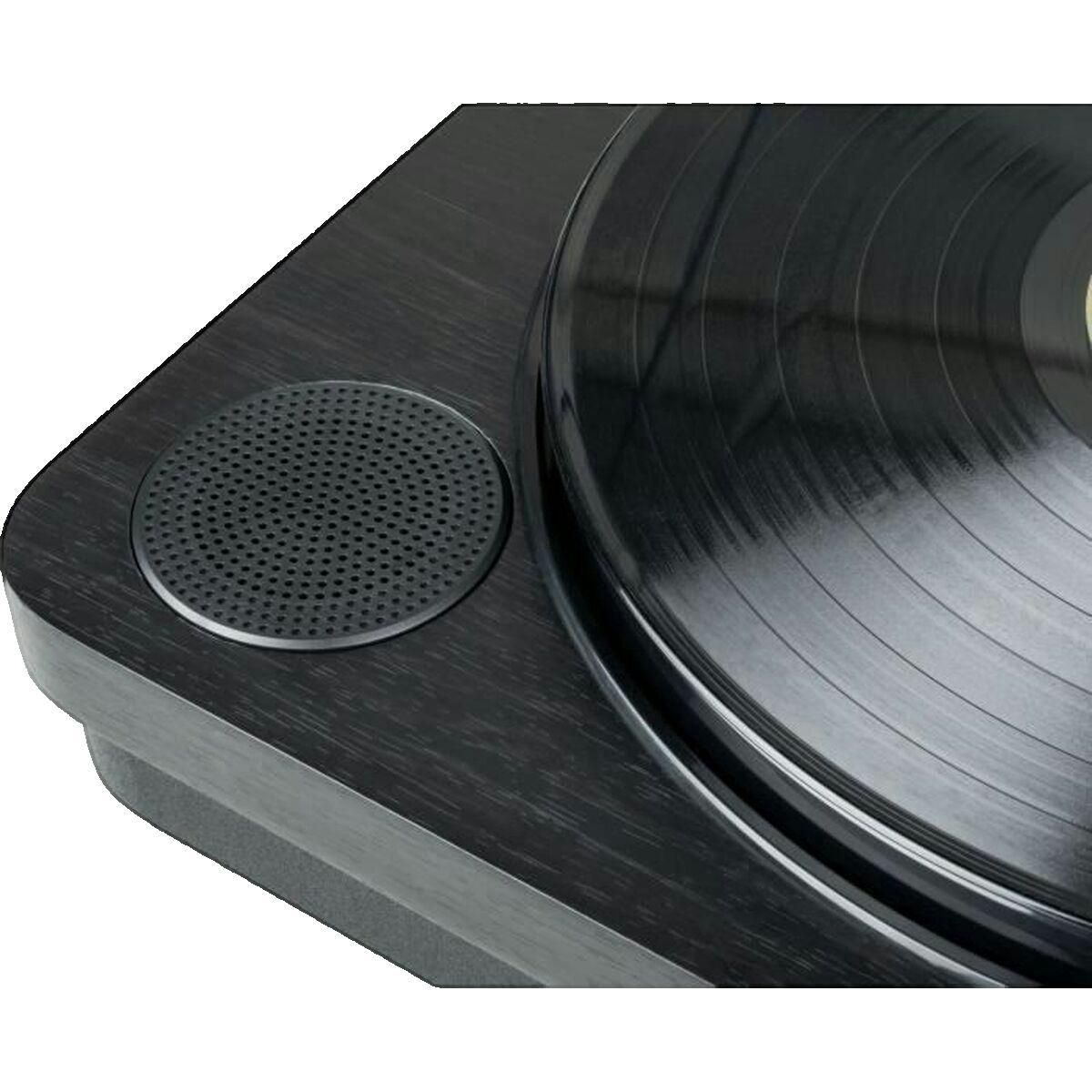 La platine vinyle Bluetooth Thomson TT650BT allie modernité et tradition avec une finition noire élégante. Elle dispose d'une connectivité Bluetooth 5.0, de haut-parleurs intégrés et permet d'écouter vos vinyles ou de la musique via Bluetooth ou USB. L'appareil offre également la possibilité d'enregistrer vos vinyles sur clé USB sans logiciel, facilitant la numérisation de vos albums préférés. Trois vitesses de lecture (33, 45 et 78 tours par minute) sont disponibles, accompagnées d'un contrôle de pitch pour ajuster la vitesse de lecture. Son entraînement par courroie garantit une lecture stable, avec un sélecteur phono/ligne pour s'adapter à différents systèmes audio. La platine est équipée de grands pieds sur ressort pour éviter les vibrations, de sorties RCA stéréo avec câble inclus (RCA vers 3,5 mm) ainsi que d'un adaptateur pour disques de 45 tours. Elle pèse 6.46 kg et inclut une fonction d'auto stop pour une utilisation pratique et sécurisée.