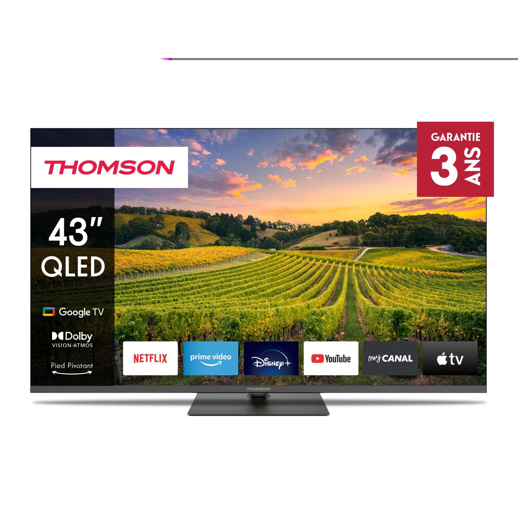 | Pied | central rotatif, permet de régler l'orientation du téléviseur d'un simple mouvement de main pour faire tourner l'écran et de la regarder depuis n'importe quel endroit | |