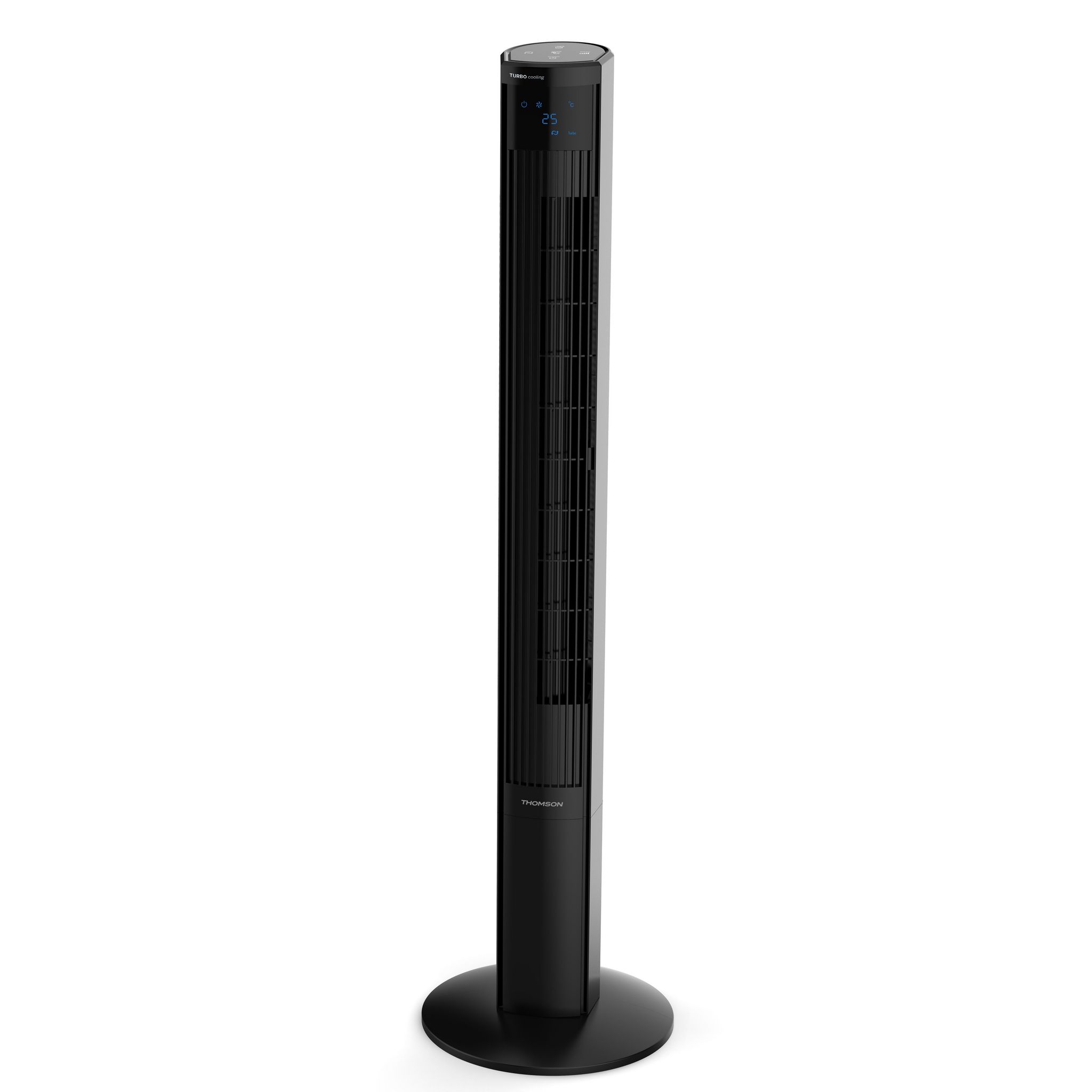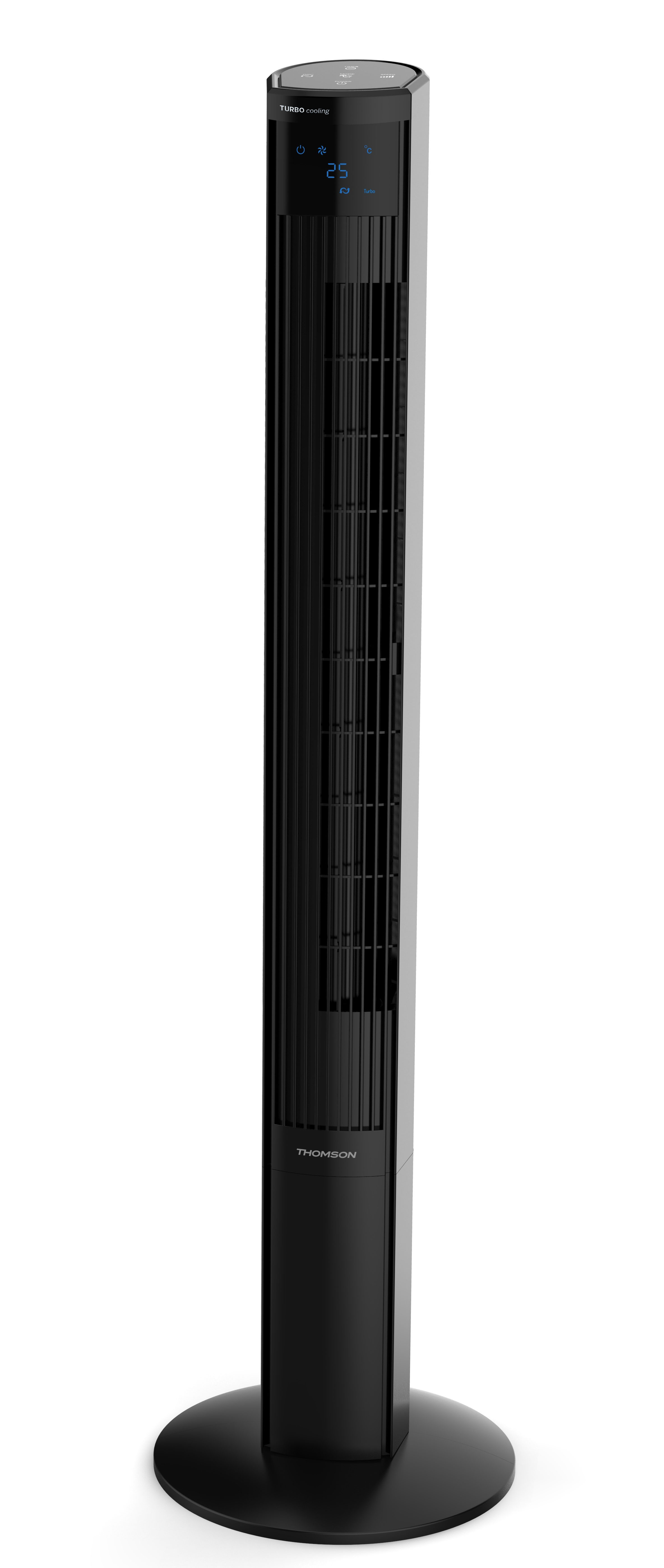 50 W, 3 Vitesses, Mode turbo, Débit d'air 2400 m3/h, 116 cm, Ecran LED, Indication de la température de la pièce, Oscillant sur angle 70°, 3 modes de fonctionnement, Minuteur 12h, Départ différé, Télécommande incluse, Noir