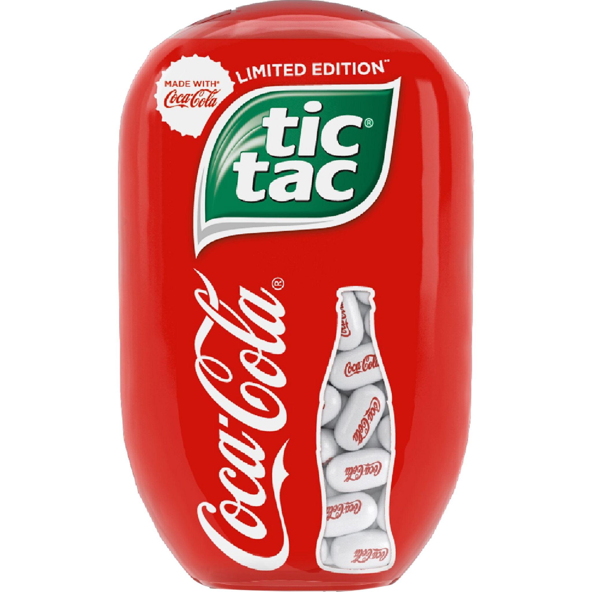 Goûtez Tic Tac au vrai goût de Coca-Cola ! Le goût unique de la marque d’Atlanta, pour la première fois disponible dans la forme iconique de la petite pastille Tic Tac, pour un vent de fraîcheur tout en légèreté ! TIC TAC COCA COLA : Pastilles aromatisées au goût de coca cola