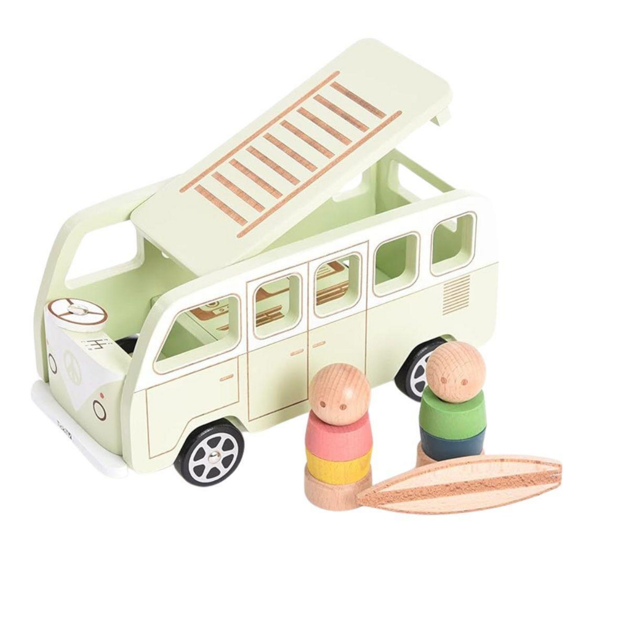 Un joli nouvel ajout à notre gamme de jeux imaginatifs, notre camping-car en bois est prêt pour l'aventure ! Fabriqué à partir de contreplaqué de bouleau lisse et de hêtre massif, le van présente de magnifiques marquages profonds au laser pour l'exploration sensorielle, des roues roulantes et un volant rotatif, un toit relevable, un lit/plan de travail de cuisine double face amovible, une planche de surf et 2 arc-en-ciel en bois. Les gens de la communauté. Les gens ont des têtes sur des corps filetés, 4 poignets supplémentaires de couleur arc-en-ciel et des « pieds » qui se vissent pour maintenir les pièces en place. Les enfants peuvent mélanger et assortir les poignets pour créer des corps de formes et de couleurs différentes pour leurs voyages imaginatifs. L'ensemble de 5 pièces comprend le camping-car, une table/lit amovible, 2 figurines et une planche de surf.
