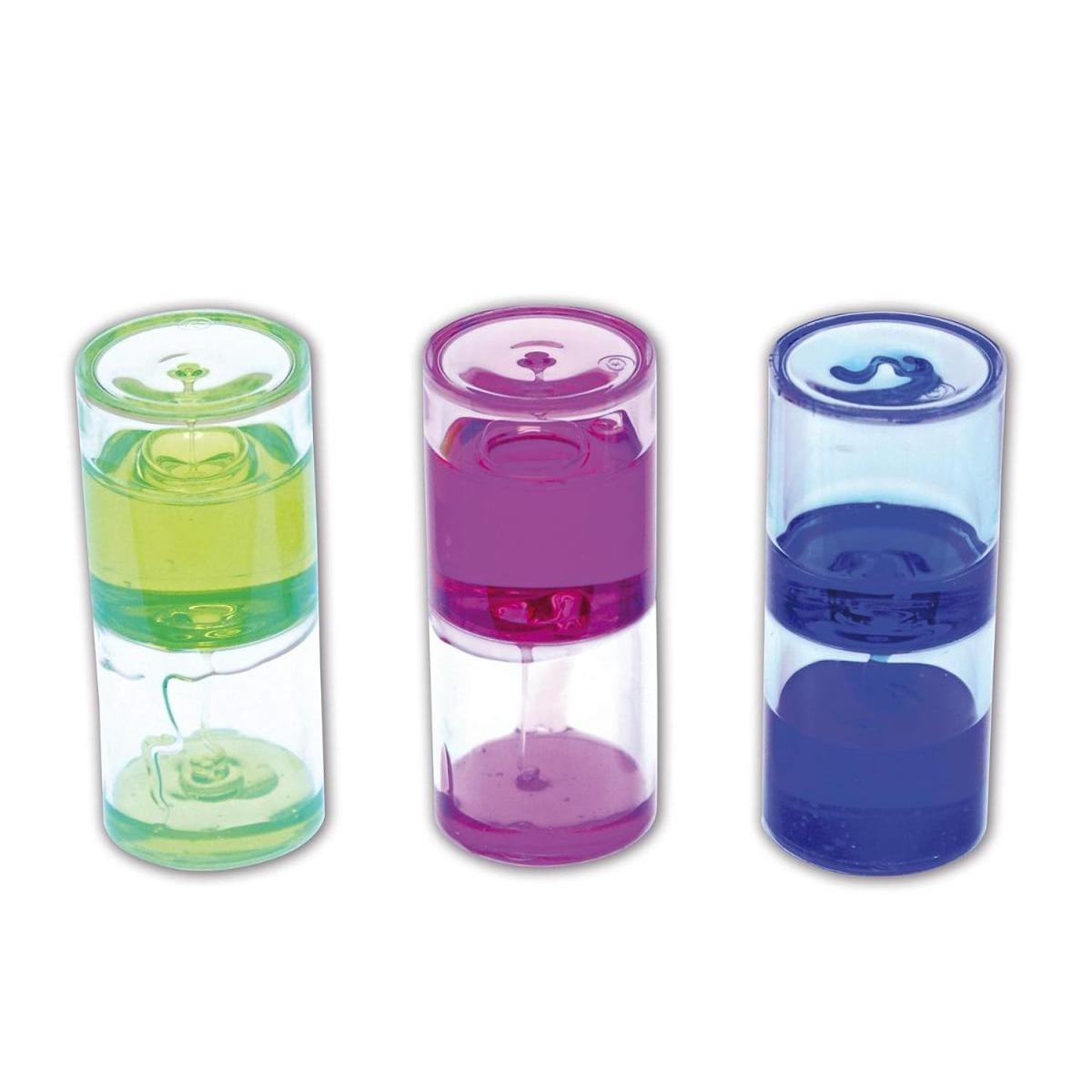 Trois tubes de limon cristallins de taille standard avec une gelée de plastique liquide non toxique et épaisse en bleu, rose et vert qui suinte lentement et spirale vers le fond. Les tubes de limon liquide sensoriel captiveront et fascineront et constituent une ressource idéale pour une concentration tranquille, tout en inspirant la curiosité, en développant un langage créatif et en comprenant des principes scientifiques simples. Fabriqué à partir de plastique résistant aux chocs. Ingrédients. Le liquide utilisé pour créer cet ensemble est composé de :. Polyisobutène (CAS 9003-27-4), Colorant alimentaire. Tous les matériaux utilisés dans la fabrication de nos produits liquides sensoriels sont dans les limites autorisées fixées par les réglementations européennes en matière de altification, d'étiquetage et d'emballage (CLP 2008).