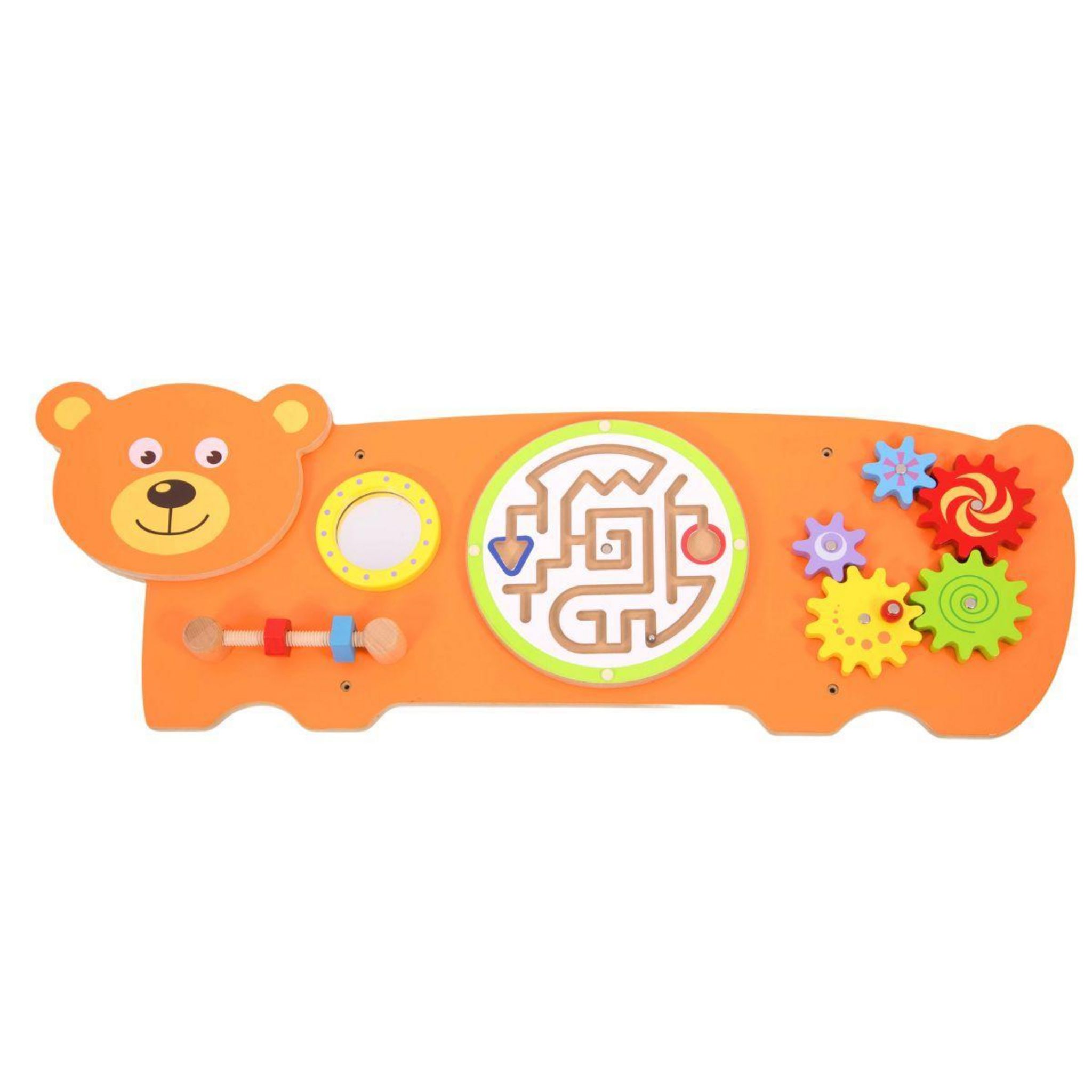 Jouet mural en bois visuellement époustouflant, offrant une gamme d'activités de manipulation intéressantes pour un seul enfant ou un groupe d'enfants jouant et explorant ensemble. Excellent pour le développement de la coordination il-main, du contrôle des doigts et de la motricité fine. Proposer également des défis de résolution de problèmes adaptés aux jeunes enfants tout en engageant les enfants dans des conversations sur ce qu'ils font. Comprend des vis de fixation. Fabriqué en MDF et recommandé pour une utilisation en intérieur uniquement.