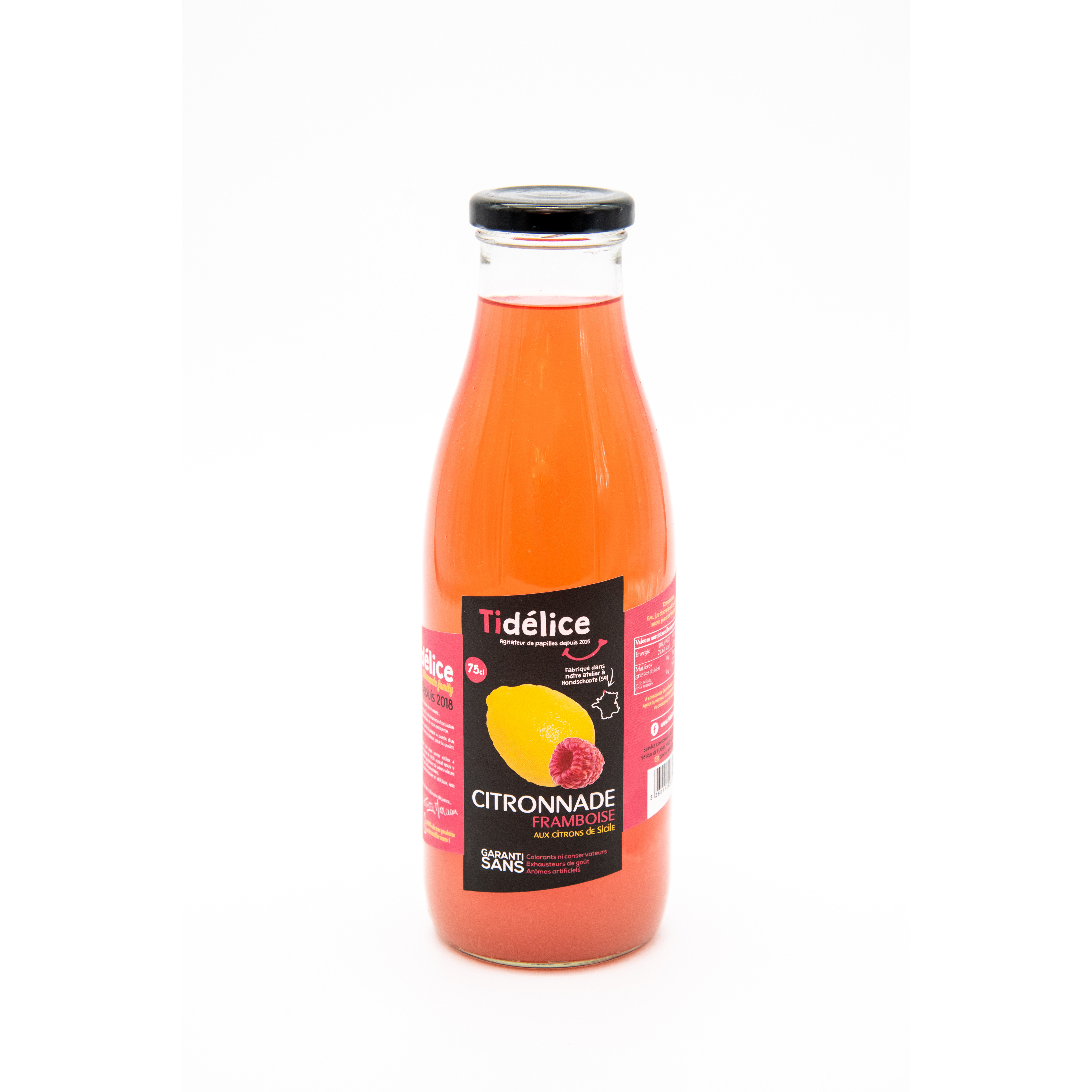 eau, jus de citron de Syracuse 8%, sucre, purée de framboise5%