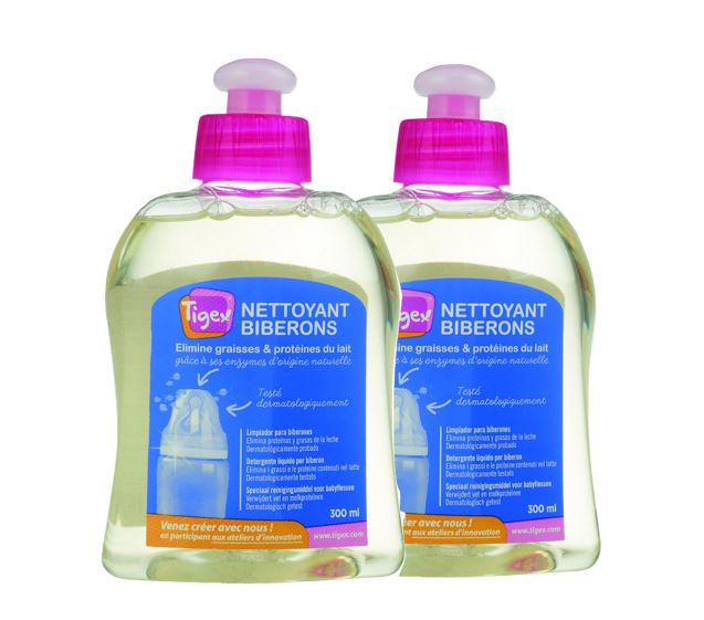 La marque Tigex a conçu pour vous ce lot de 2 liquides nettoyant spécial pour biberons et tétines. Sa formule 100% naturelle constitués d'agents ultra doux est garantie sans paraben. Facile à rincer, il enlève efficacement les graisses et protéines contenues dans le lait et repas de bébé. Une formule ingénieuse pour vous faciliter la vie !