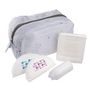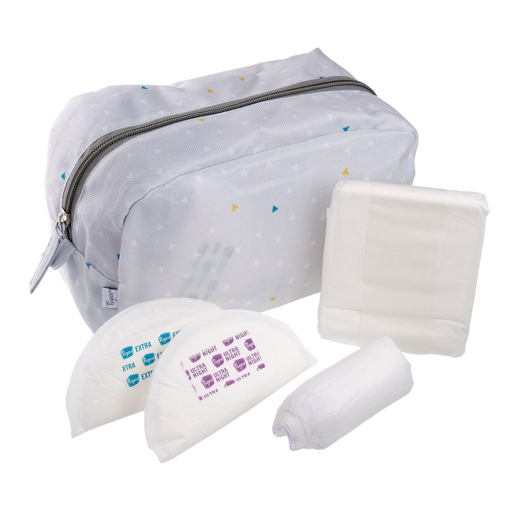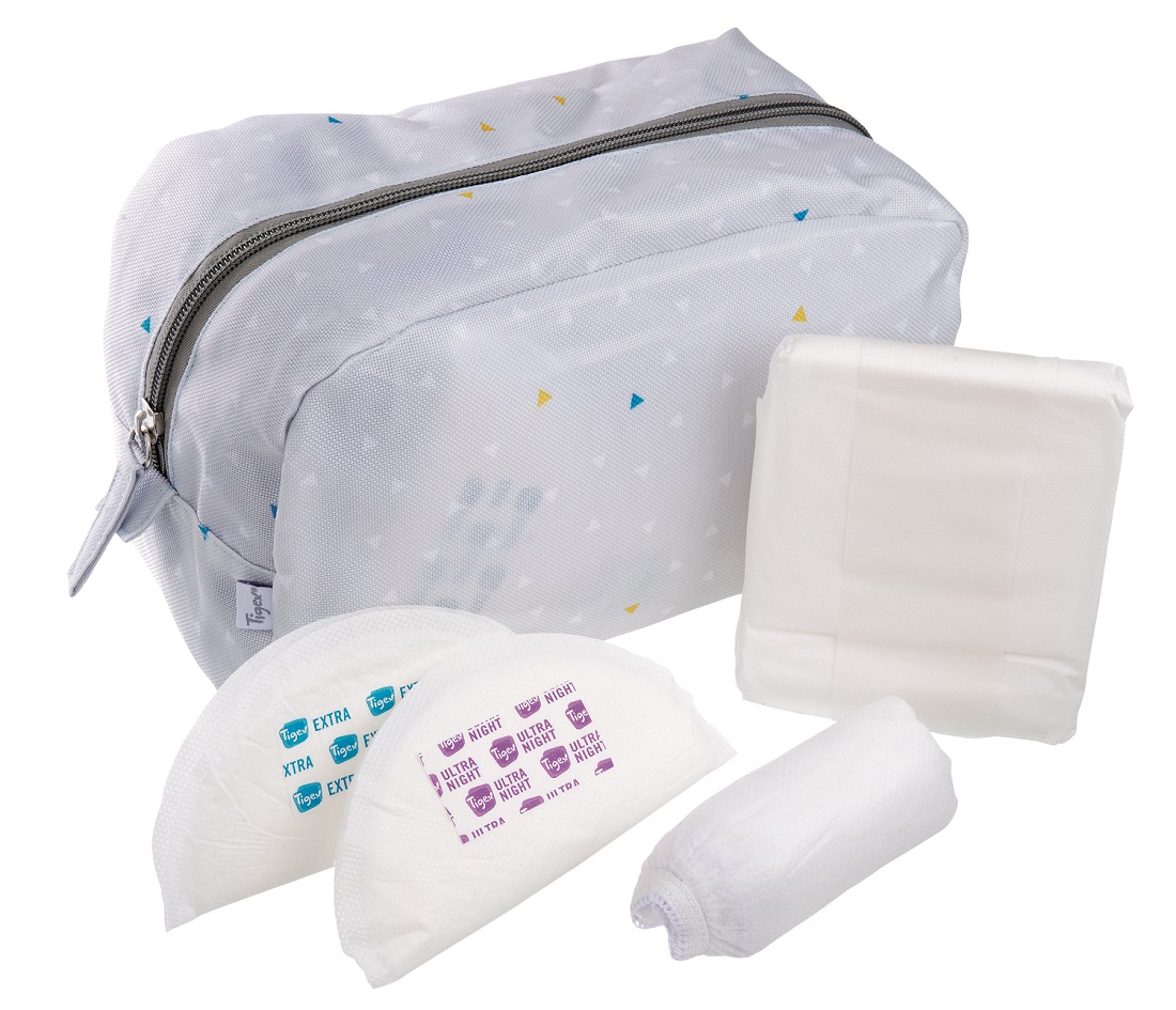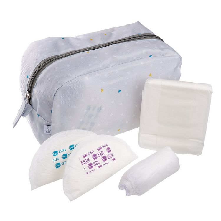 La trousse de maternité de Tigex contient tout le nécessaire pour les 3 premiers jours à la maternité: une offre clef en main pour toutes les futures mamans ! Elle contient 10 serviettes maternité, 3 slips jetables taille L, 4 coussinets ultra night et 12 coussinets Extra. Joliment décorée, la trousse peut se garder.
