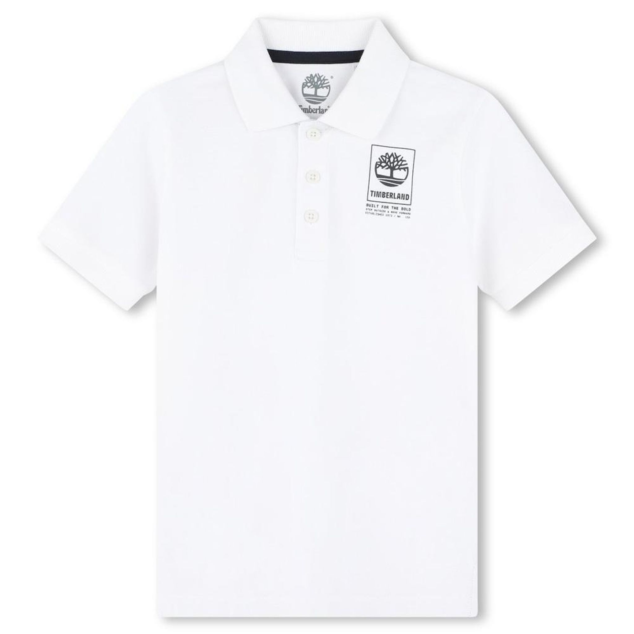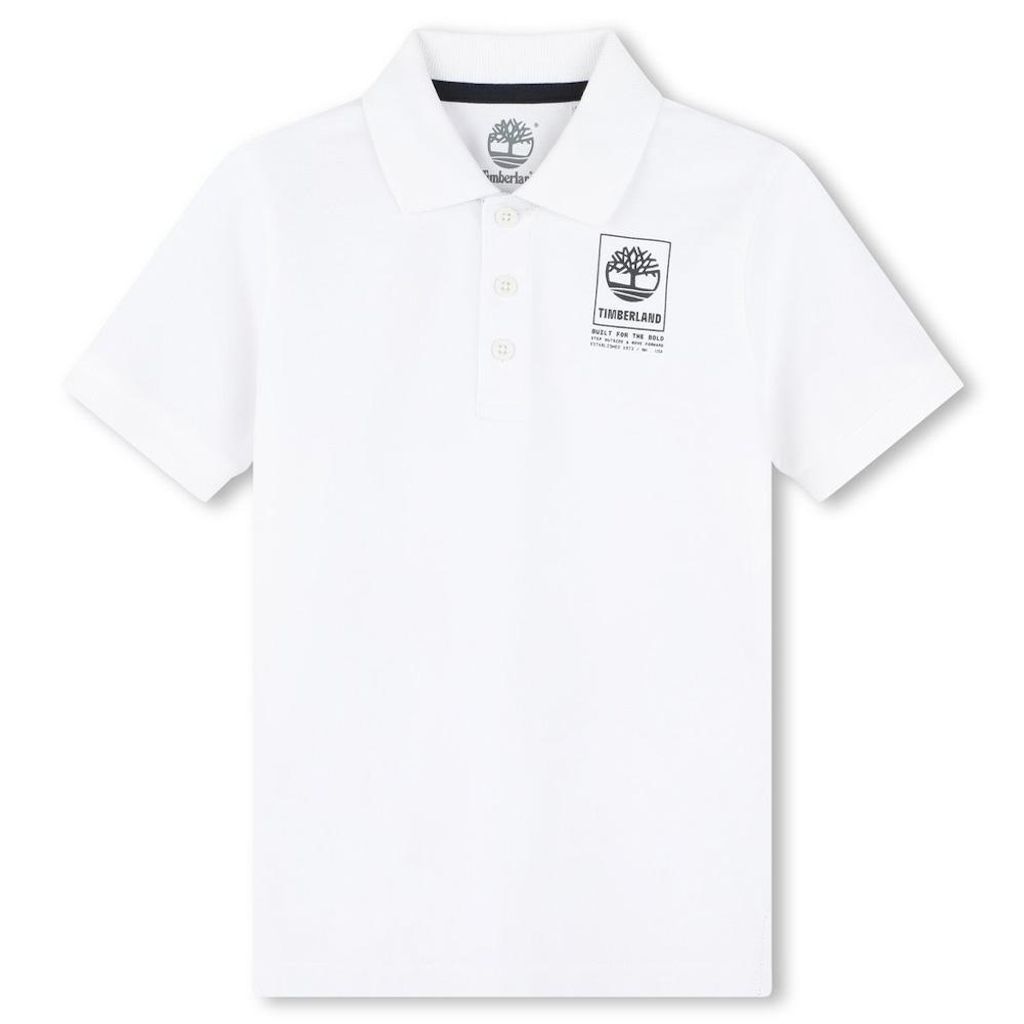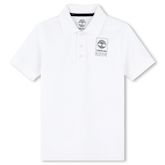 Craquez pour le polo garçon Timberland !Coloris : Blanc Col polo 3 boutonsManches courtesLogo TimberlandComposition : 100% Coton