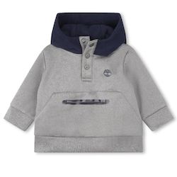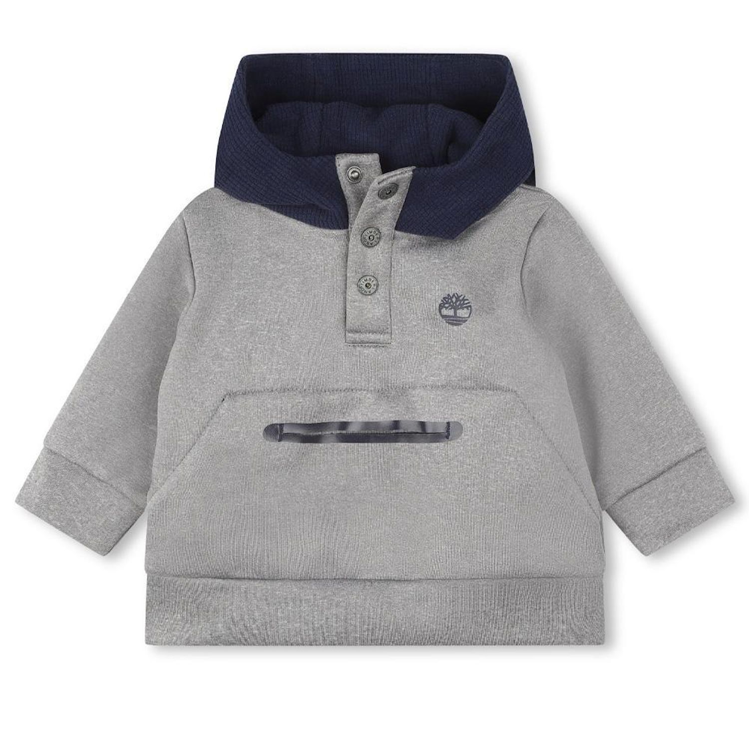 Optez pour le sweat bébé Timberland !- Coloris : gris/marine- Capuche- Manches longues- 3 boutons au col- 1 poche sur l'avant- Composition : 100% Polyester