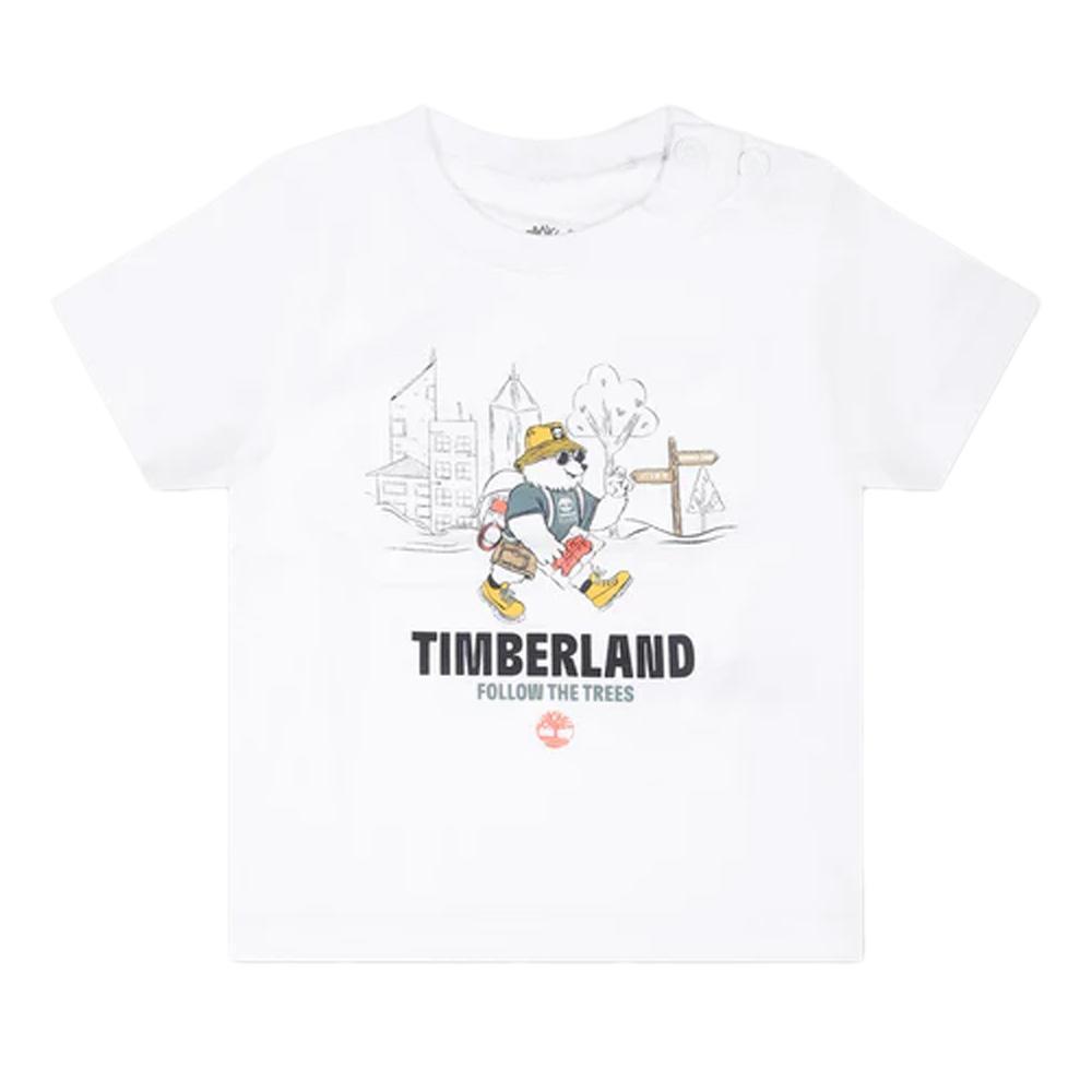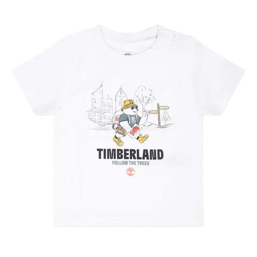 Optez pour le t-shirt bébé Timberland !Manches courtesCol rond 2 boutonsColoris : BlancImprimé sur l'avantComposition : 100% Coton