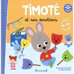 Timoté apprivoise ses émotions ! Timoté est un petit lapin qui, au fil des albums, partage sa vie avec ses copains et sa famille. Comme tous les petits de son âge, il découvre ses émotions : joie, peur, tristesse, jalousie, timidité. Heureusement, papa et maman sont là pour parler et l'aider à surmonter ses petits soucis de quotidien. En bonus, des petits jeux pour mettre des mots sur les émotions. Nouveau : votre enfant peut désormais écouter gratuitement la version audio de l'histoire via l'application Lizzie en scannant le QR code à retrouver dans le livre !