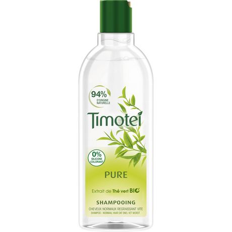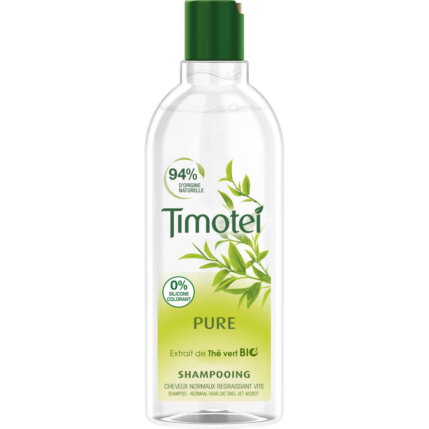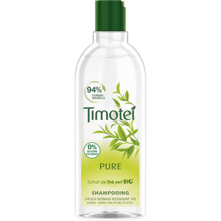 Shampooing Femme Le shampooing Timotei Pure est fait pour les cheveux normaux graissants rapidement. Sa formule enrichie au Thé vert Bio, redonne fraîcheur et légèreté à vos cheveux. Si vous désirez un soin cheveux supplémentaire, vous pouvez utiliser ce shampooing avec l'après-shampooing Timotei Pure. Depuis toujours, des soins capillaires inspirés par la nature. Dès sa création dans les années 1980, Timotei s’est fixé un objectif simple : sélectionner dans la nature les meilleurs ingrédients et les associer dans des formules expertes pour créer des soins adaptés à chaque type de cheveux. Timotei figure parmi les premières marques* à avoir créé des soins capillaires s’inspirant de la nature. Son histoire a commencé il y a une trentaine d’années avec l’élaboration d’un shampooing enrichi en extraits naturels d'herbes. Ce shampooing était tellement doux qu’il pouvait être utilisé tous les jours. Ce fut un vrai succès ! Depuis, Timotei s’applique à développer de nouvelles formules, avec des ingrédients d'origine naturelle ou bio, connus pour leurs vertus multiples, afin de répondre aux besoins de tous les types de cheveux (des cheveux gras aux cheveux secs, des cheveux bruns aux cheveux blonds vous proposant du shampooing, de l’après-shampooing, des laques, gels ou encore du shampooing sec). Timotei prend soin des cheveux de toute la famille, petits et grands. Par ailleurs, conscients de l’importance de préserver la planète, Timotei s’efforce de réduire son impact environnemental. Tous les flacons sont 100 % recyclables, et ceux des shampooings et après-shampooings sont fabriqués avec 25 % de plastique recyclé. La marque est partenaire d'écoemballages pour promouvoir, organiser et financer le tri et le recyclage des emballages ménagers. Afin de vous aider à bien les recycler, les consignes de tri sont indiquées sur les emballages des produits Timotei. Timotei – la beauté sans artifice *Marques de grandes et moyennes surfaces
