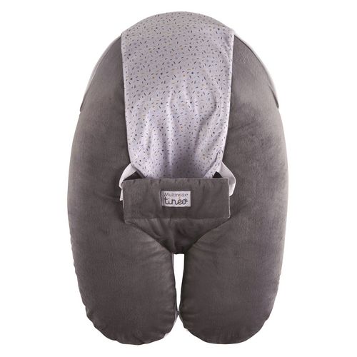 Découvrez ce coussin de maternité Multirelax en velours gris de la marque Tinéo. Son innovation brevetée vous propose un concept de coussin de maternité 3 en 1: Coussin de maternité, coussin d'allaitement et transat pour bébé. En coussin de maternité, il permet à la maman d’adopter des positions confortables afin de la soulager des différents maux (dos, ventre, jambes, etc.). En coussin d'allaitement, il permet de surélever bébé afin d’allaiter ou lui donner le biberon confortablement, sans se fatiguer. Grâce à son système de harnais réglable, le Multirelax se transforme pour accueillir confortablement bébé. En un seul geste, sortez la ceinture de maintien de la poche de rangement intégrée pour maintenir bébé dans son Multirelax (de 3 à 9 kg - de 1 à 6 mois environ).