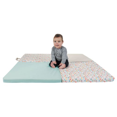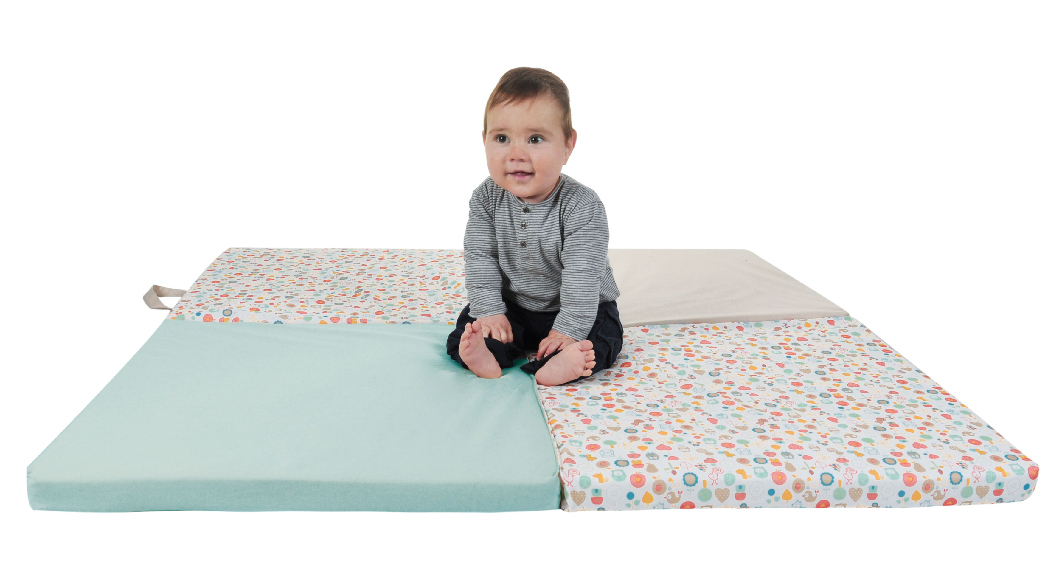 Matelas tapis malin foret enchantée, est à la fois un tapis de jeu, un matelas nomade et une fois plié et vrai petit pouf pour nos bout de chou