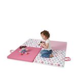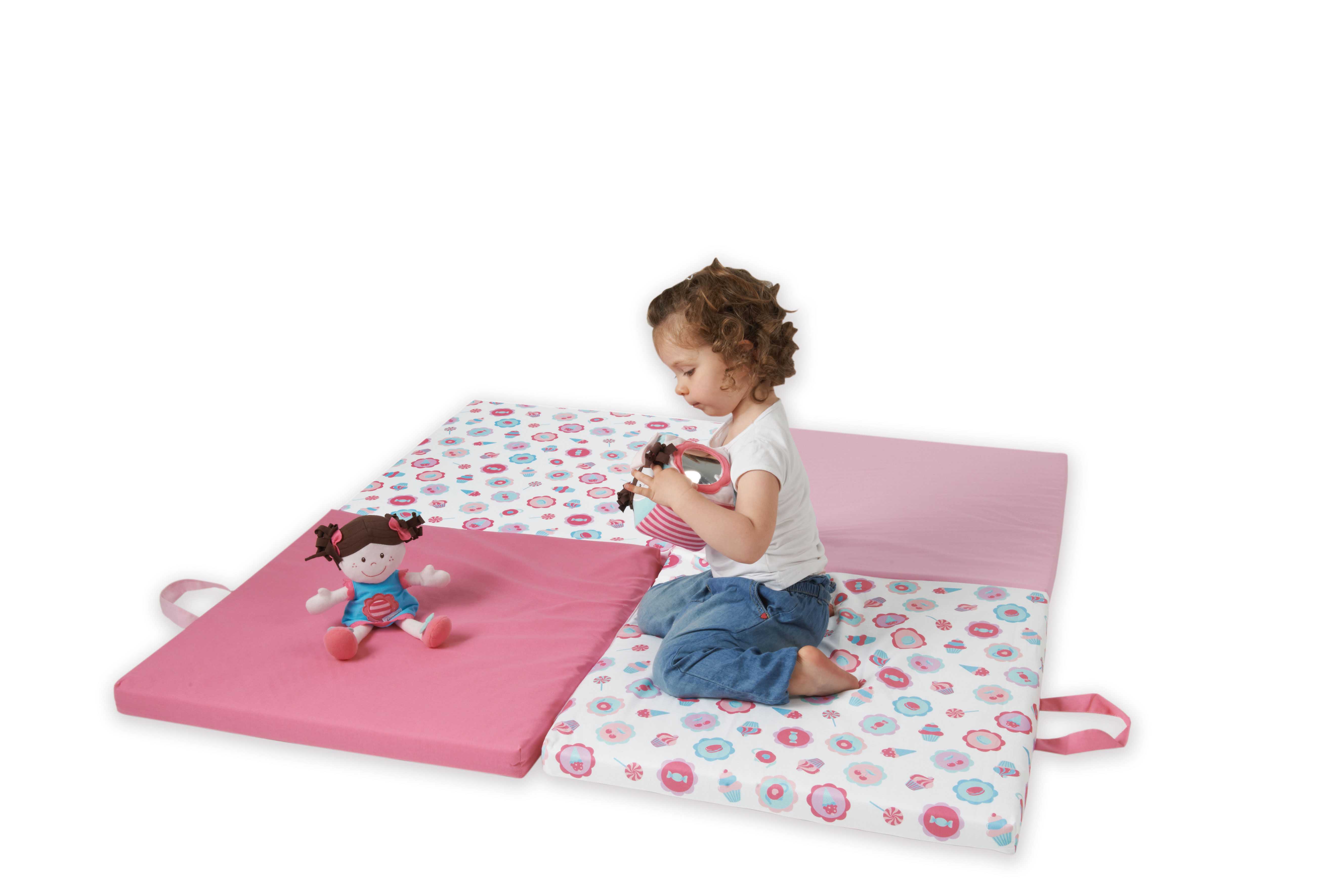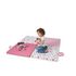 Tapis d'éveil 3 en 1 utilisable sur le sol ou dans un parc, transformable en pouf ou en petit lit d'appoint. Déhoussable et lavable en machine.