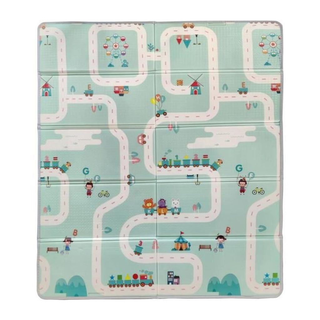 Maxi tapis d'éveil réversible - TINEO - 150 x 180 cm - Facade animaux / Circuit de voitures