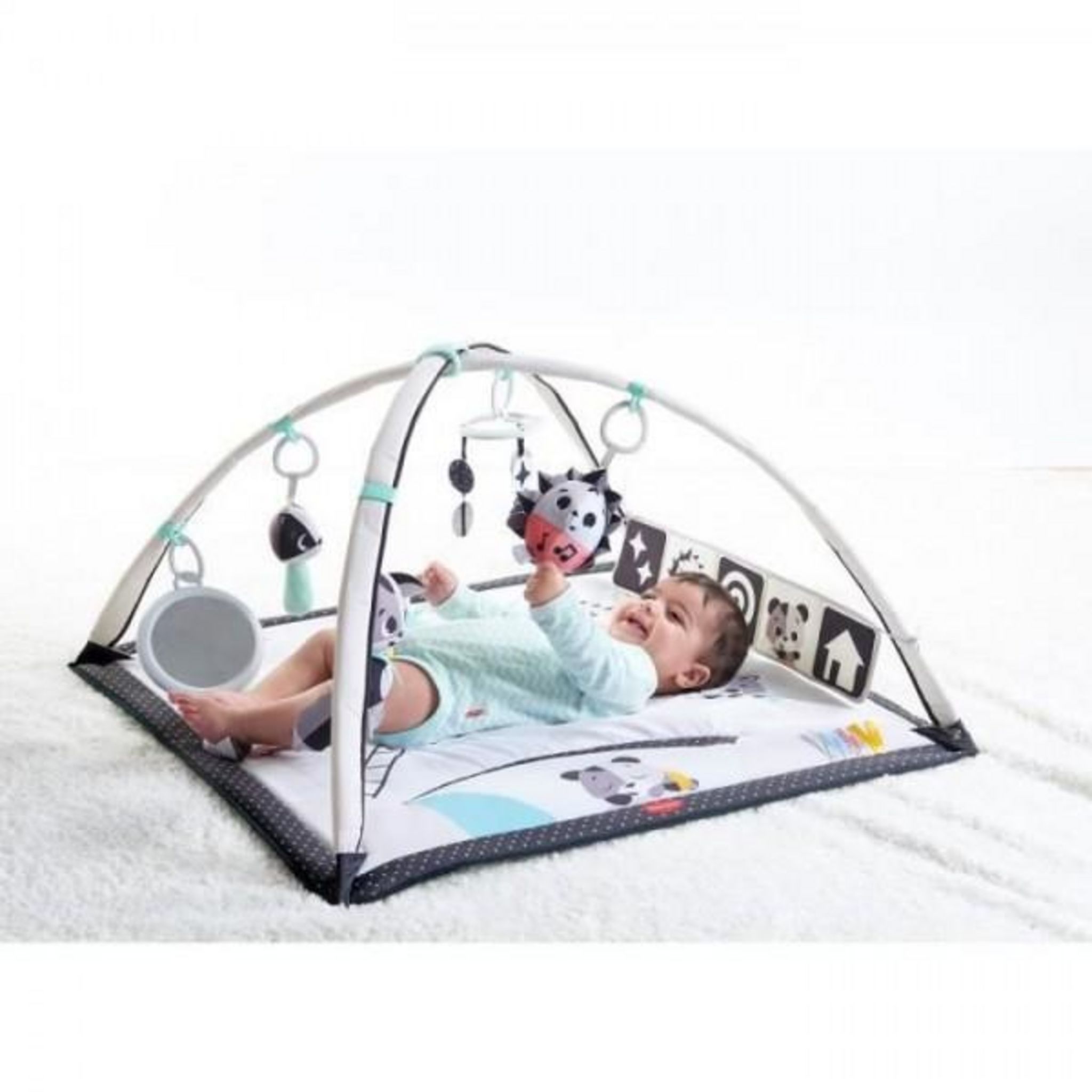 En savoir +Le tapis d'éveil bébé musical Tiny Love de la collection Black & White est spécialement conçu pour favoriser le développement des nouveau-nés. Il invite a découvrir un univers féérique sous un ciel constellé d'étoiles. Utilisez le tapis avec ses jouets suspendus ou déplacez les arches pour créer un spacieux espace de jeu parfait pour vous amuser avec bébé.