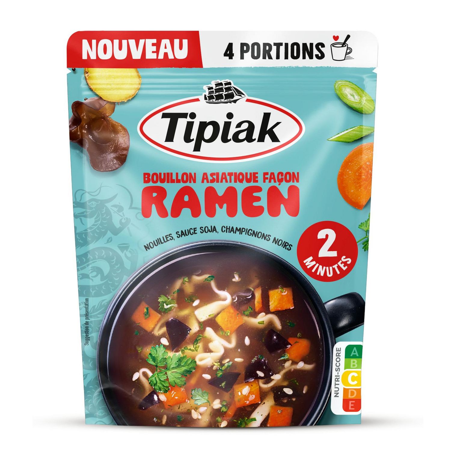 Découvrez toute l'intensité des saveurs asiatiques dans ce bouillon: nouilles, sauce soja salée, champignons noirs, carottes. Le tout sublimé par des plantes aromatiques pour une touche de gourmandise !