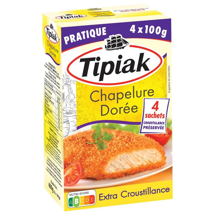 Chapelure dorée extra croustillante en sachets (4 sachets de 100G). Pratique : sachet pré-dosé et meilleure conservation. 1 sachet = 4 escalopes.