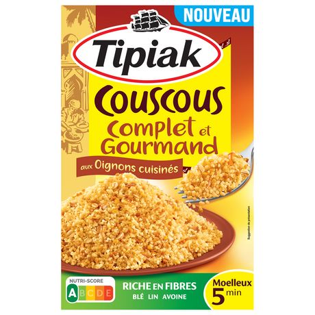 Ingrédients : Semoule de BLE dur complète précuite (GLUTEN) ( 92%), graines de lin blond (4%), flocons d’AVOINE (GLUTEN) (2,3%), farine d'ORGE maltée précuite (GLUTEN) (0,75%), oignons frits (0,5%)