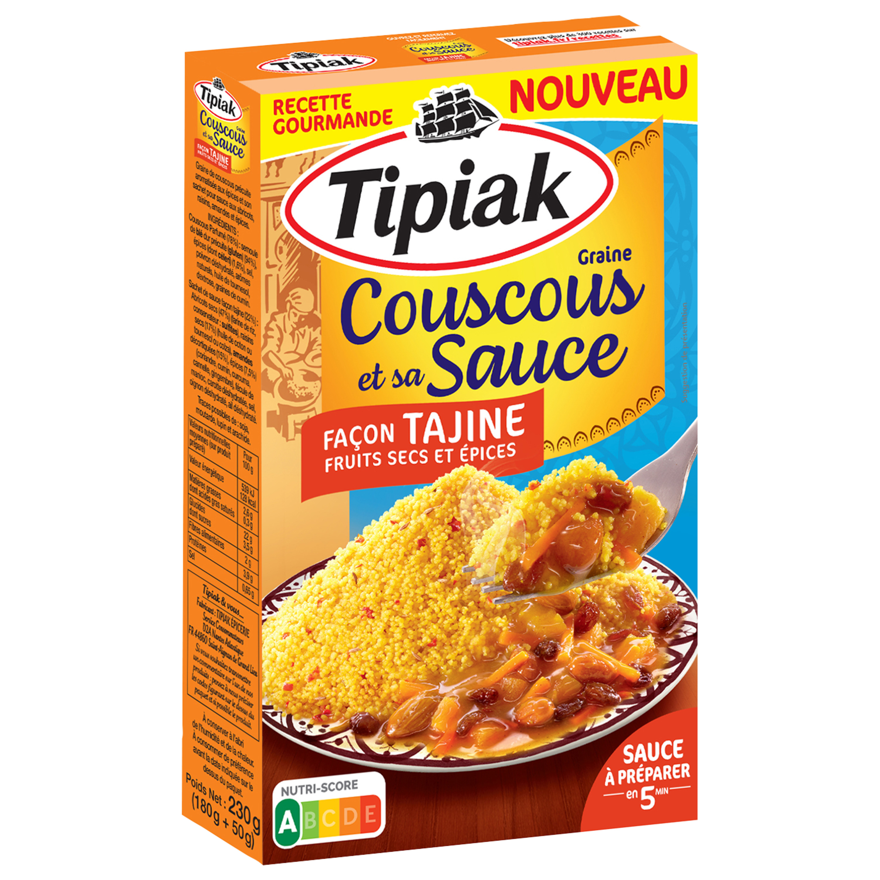 Tipiak redécouvre la cuisine d'Orient et s'en inspire pour créer une recette unique, moelleuse et savoureuse : Couscous parfumé et sa sauce façon Tajine aux épices et aux fruits secs.
