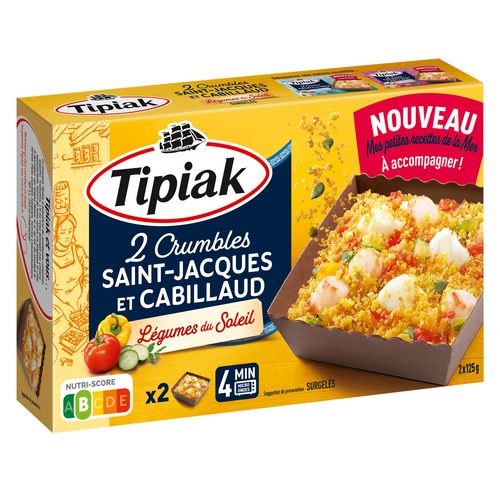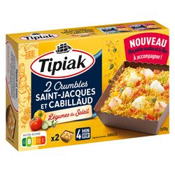 Des Noix de Saint-Jacques et de tendres morceaux de Cabillaud cuisinés dans une compotée de légumes du soleil relevée aux aromates. Le tout, recouvert d’un crumble doré et croustillant. Idéal pour un petit plat du quotidien avec l’accompagnement de votre choix : Seulement 4 minutes au micro-ondes !
