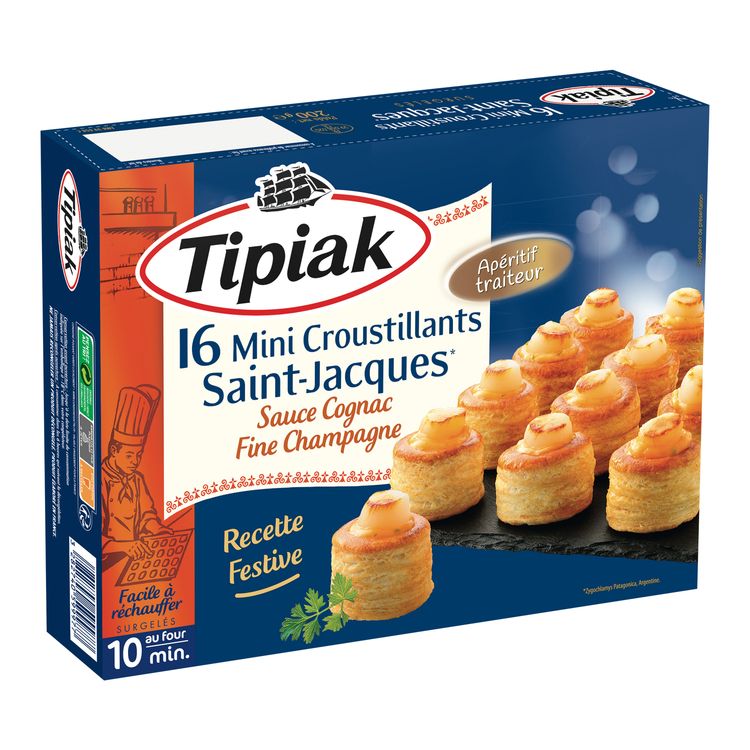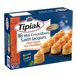Tipiak vous propose une recette de Mini Croustillants en version festive. 16 Mini croustillants Saint-Jacques* Sauce Cognac Fine Champagne surgelés