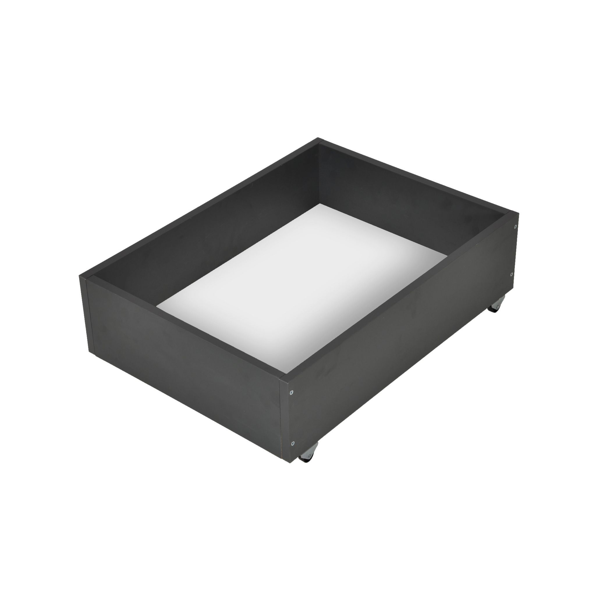 Panneau en aggloméré mélaminé couleur hêtre, ep 16 mm Fond en isorel, ep 13 mm 4 roulettes de 3cm de haut