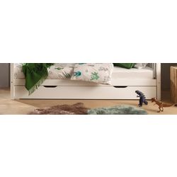 Le tiroir de lit convient à la série de lits cabane ATLANTA et offre un espace de rangement supplémentaire pour les couvertures ou le linge de lit. La façade et les côtés sont en pin naturel massif. Il a une dimension intérieure d'environ: L: 9 x H: 17 x P: 194 cm. Les panneaux de plancher sont enduits partout et décorent. Il convient également à un matelas de 90 x 190 cm, la hauteur maximale du matelas est de 17 cm. Grâce au guide à rouleaux et aux deux évidements de poignée à l'avant, il peut être facilement retiré et enfoncé. Les produits sont de haute qualité et stables. Les ferrures sont en métal. Le matelas et la décoration ne sont pas inclus. Le contenu de la livraison est uniquement le tiroir de lit. Les marchandises sont démontées, avec des instructions de montage pour un auto-assemblage facile. Empreinte env.: L: 198,5 x H: 18,5 x P: 94 cm.