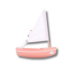 En savoir +Dans l'argot maritime français le bachi est le couvre-chef des matelots et quartiers-maîtres de la Marine. Fabriqué en drap de laine bleu, il est surmonté d'un pompon rouge dans la marine française. Le modèle 200 ? dit le Bachi ? est un bateau thonier de 17cm. Fabriqué en bois de hêtre, issu des forêts bretonnes ce bateau est équipé d'une voile en coton de type bermudéen. Ce bateau a été fabriqué à la main dans notre atelier breton selon le même savoir-faire, les mêmes gestes, transmis de génération en génération depuis 1946. Robuste, il vous suivra toute votre vie si vous lui apportez le petit peu de soin qu'il nécessite. En effet le bois est une matière vivante qui réagit à l'eau. Malgré tout le soin apporté à la fabrication de nos bateaux, au contact prolongé de l'eau il est possible que ce dernier se détériore. Il est important de laisser votre bateau sécher à l'ombre et à l'abri de trop fortes chaleurs après chaque usage. Bon vent matelot !