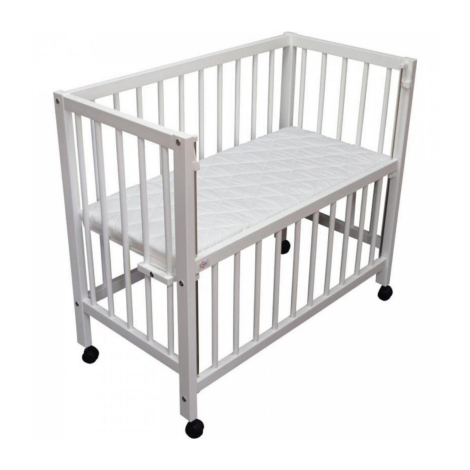 Lit bébé à barreaux cododo en hêtre massif blanc 40x90 cm