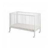 Lit bébé à barreaux pliable 60x120 cm en hêtre massif blanc