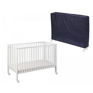 Lit Pliable Blanc avec Matelas Confortable et Housse de Protection Bleue