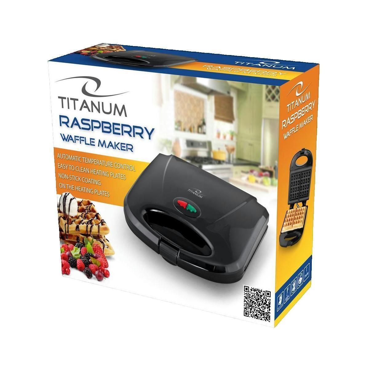Découvrez le gaufrier électrique Titanium TKT003, idéal pour préparer rapidement et facilement des gaufres croustillantes et moelleuses. Doté d'une puissance de 750 watts, il permet de cuire deux gaufres simultanément grâce à ses plaques antiadhésives pour un démoulage facile et un nettoyage rapide.