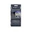 - Composition du coffret (nombre et type de pièces): 16 embouts Lg 50 mm Plat Fendu 4-6-8-10 TTX 8-10-15 6Pans Creux 2-2,5-3 Torqset 6-8-10 Triwing 1-2-3 8 Embouts Lg 25 mm TTX 20-25-27-30-40 6Pans Creux 4-5-6 +1 Porte-embouts mag LG 60 mm