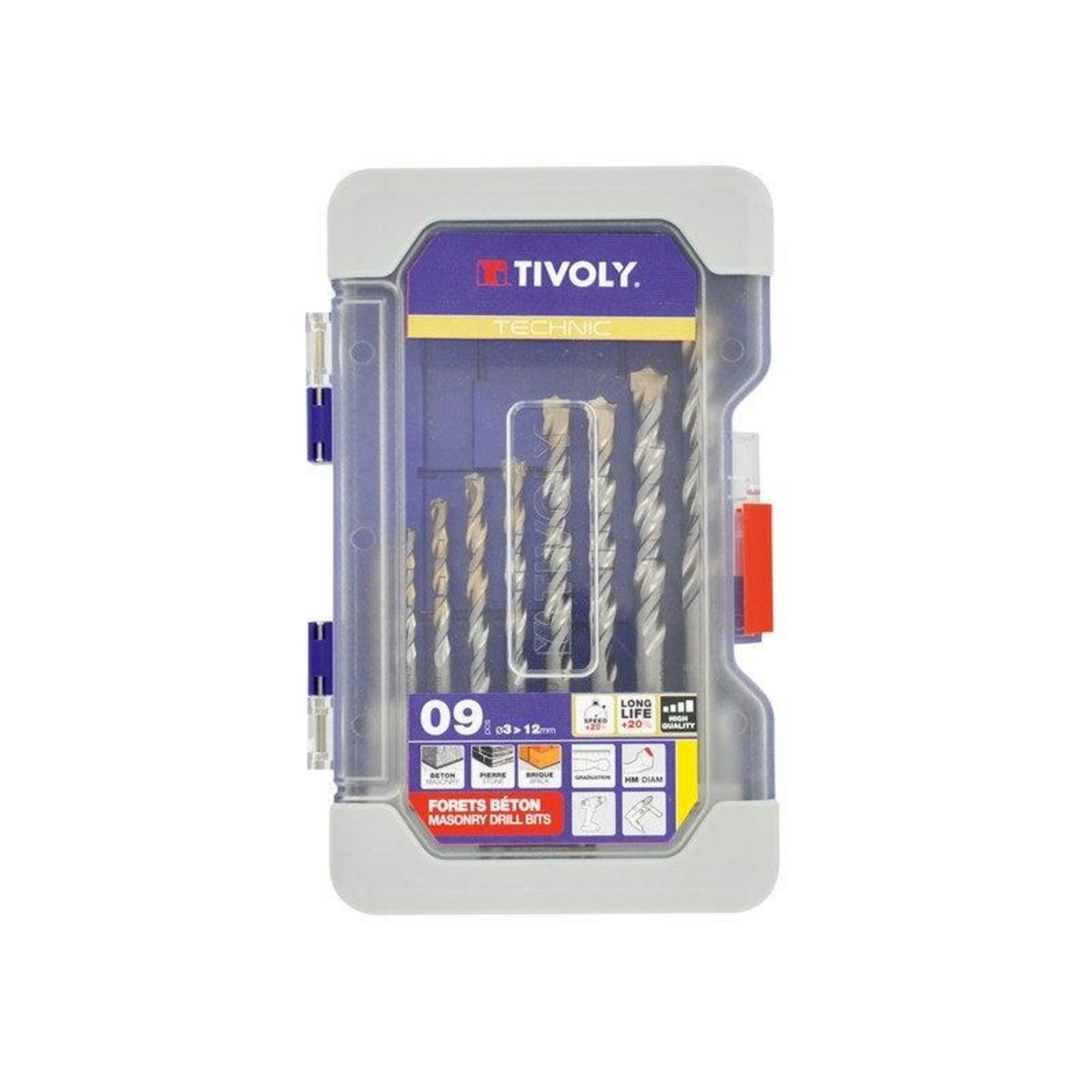 - Composition du coffret (nombre et type de pièces): 9 forets béton Technic 3-4-5-6-7-8-9-10-12mm