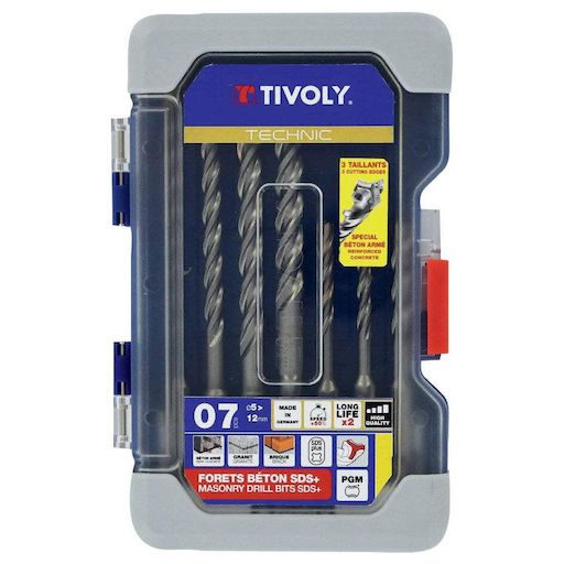 Lot de 7 forets à béton, TIVOLY, diam.5 à 12 mm