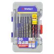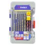 Composition du coffret (nombre et type de pièces): 20 Forets mixtes multi – matériaux: 7 forets métaux HSS taillés meulés Gold affûtage pointe en croix Ø 3-3,5-4-4,5-5-6-8 mm- 4 forets béton Extra à plaquette carbure Ø 4-5-6-8 mm- 3 forets carrelage à plaquette carbure affûtage spécial Ø 5-6-8 mm- 2