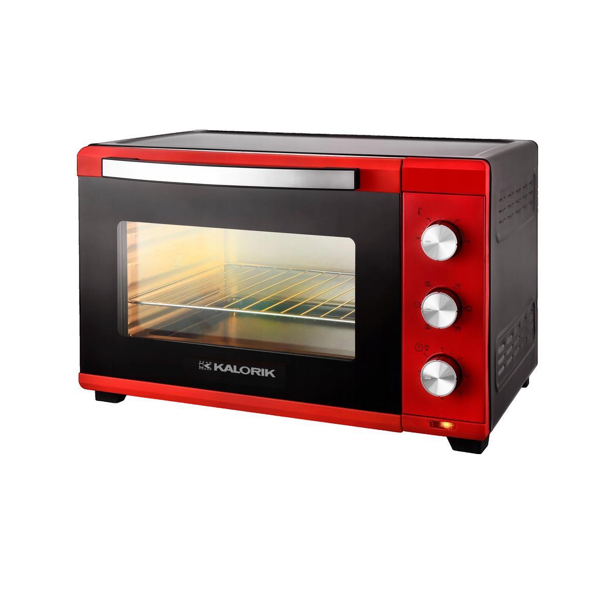 Le mini four Kalorik se distingue par sa couleur rouge vif, apportant une touche esthétique à votre cuisine. Il est équipé d'une rôtisserie, d'un thermostat réglable de 100°C à 230°C, et propose plusieurs modes de cuisson tels que la chaleur tournante, le grill, et la cuisson combinée. Ce mini four