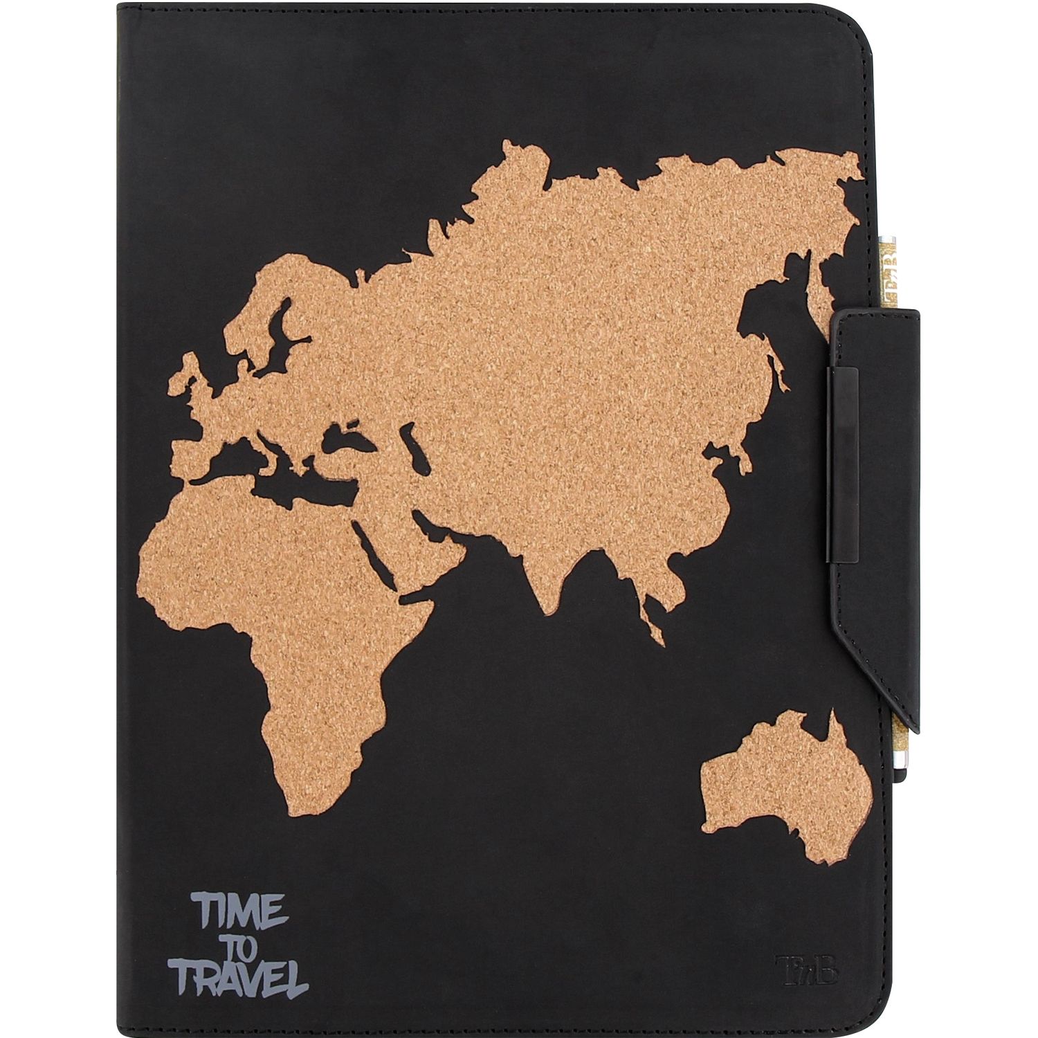 Etui pour tablette et Stylet Stylo sur le thème Travel Noir et liège