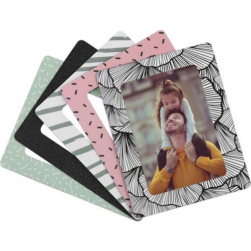 | Divers | Les cadres magnétiques s'aimantent à n'importe quel support métallique, ils seront parfaits pour décorer vos clichés. Chaque photo devient unique. Vous disposez de 5 design différents | |