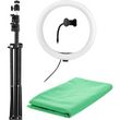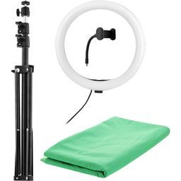 | Avantages | Un pack complet pour mettre en place son studio, comprenant : 1 trépied + 1 anneau de lumière 10 + 1 support smartphone + 1 fond vert + 1 manette de contrôle intégrée | |