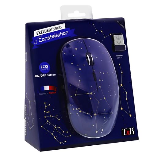 Souris sans fil avec dongle USB 2.0 - Résolution 1600 dpi - Fournie avec 1 pile AA.