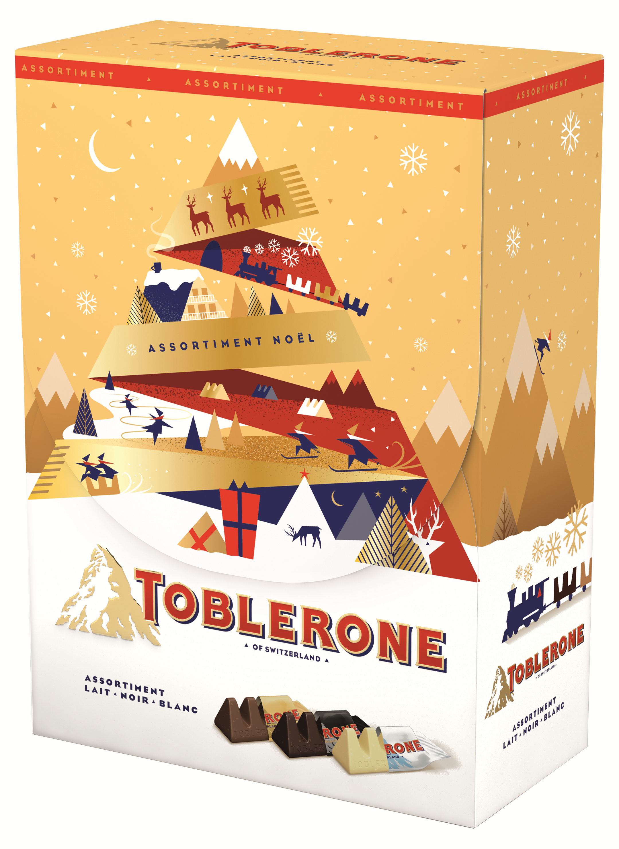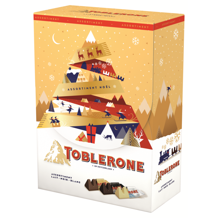 Mini barres au chocolat au lait et à la forme triangulaire emblématique. Idéal à offrir pendant les fêtes !