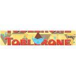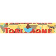 L'authentique et unique Toblerone fabriqué en Suisse. Une recette unique au chocolat au lait suisse et au bon nougat miel amandes, dans une forme singulière.