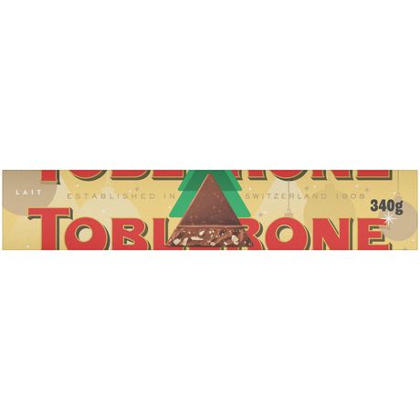 L'authentique et unique Toblerone fabriqué en Suisse. Une recette unique au chocolat au lait suisse et au bon nougat miel amandes, dans une forme singulière.