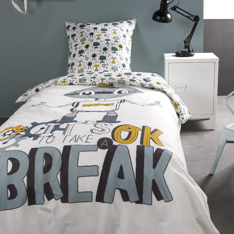 Parure de couette 140 x 200 Take a break Réversible 100% Coton / 57 Fils/cm²