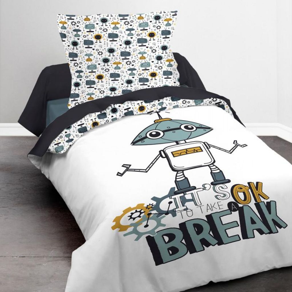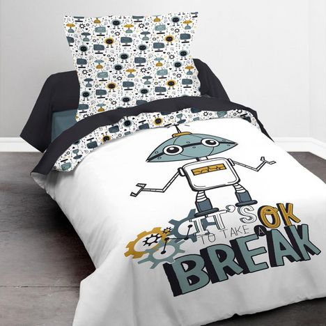 Parure de couette 140 x 200 Take a break Réversible 100% Coton / 57 Fils/cm²