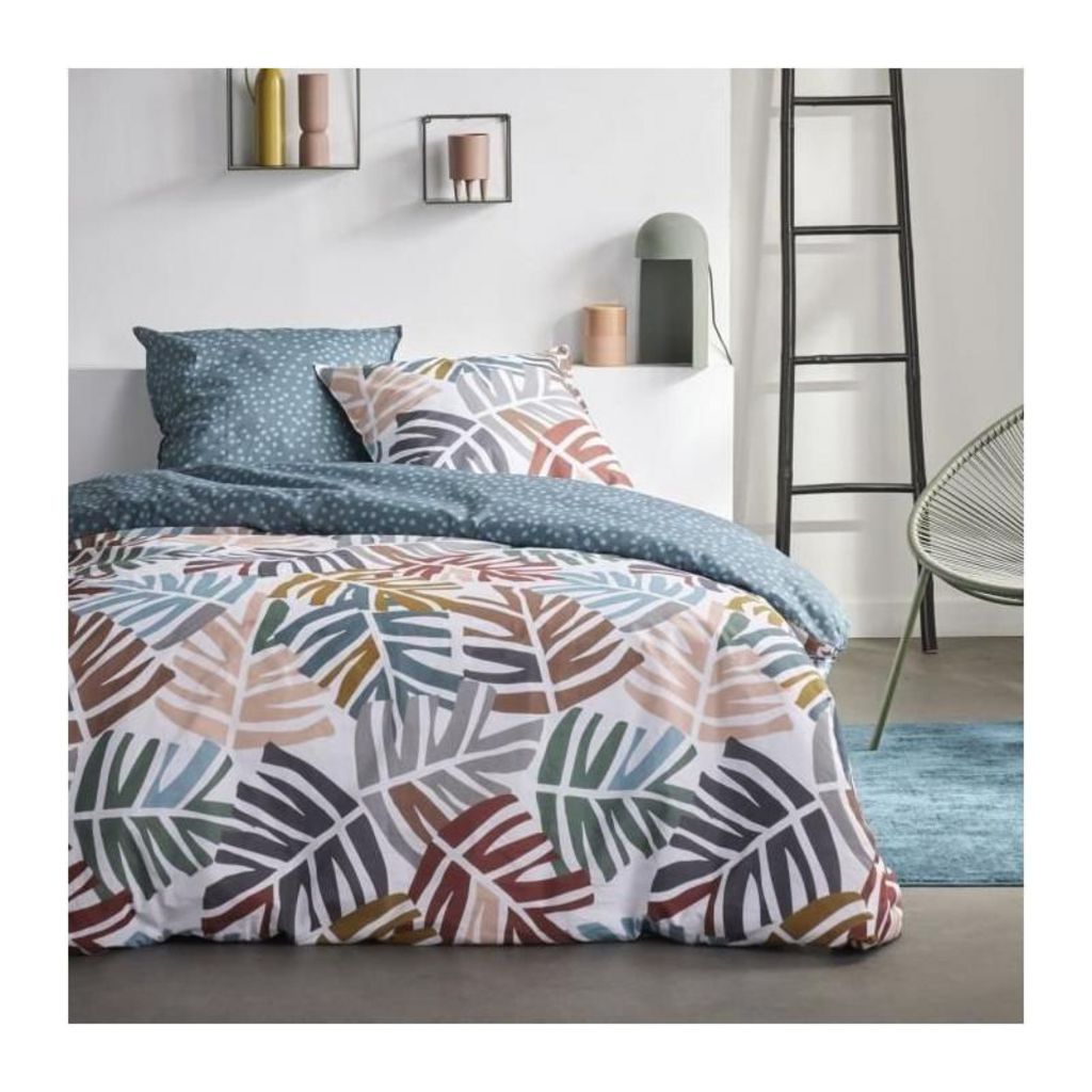 En savoir +Parure de lit imprimée de la collection Sunshine par Today. Existe aux dimensions : Lit 2 personnes Housse de couette 220x240 cm + 2 taies d'oreillers 63x63cm. Lit 2 personnes Housse de couette 240X260 cm + 2 taies d'oreillers 63X63 cm. Lit 1 personne Housse de couette 140x200cm + 1 taie d'oreiller. Composition : 100% Coton 57 fils. Entretien : Entretien facile. Lavage 40° en machine. Détails : Fente passe main et fermeture boutonniere. Cette parure de lit Today accompagnera vos nuits et vous offrira un confort de sommeil inégalable. Sa composition 100% coton 57 fils donnera a votre literie du style dans des matiere naturelle. Ses fentes passe main et sa boutonniere dissimulée rendent le produit simple d'utilisation. Retrouvez l'intégralité de la collection Sunshine par Today, et complétez votre linge de maison avec ses produits aux couleurs et motifs assortis.