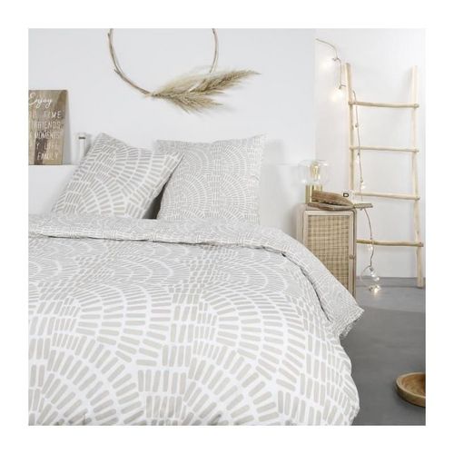 Parure de lit Mawira - 2 personnes - 260 x 240 cm - 100% coton - Beige Motif Ethnique - TODAY